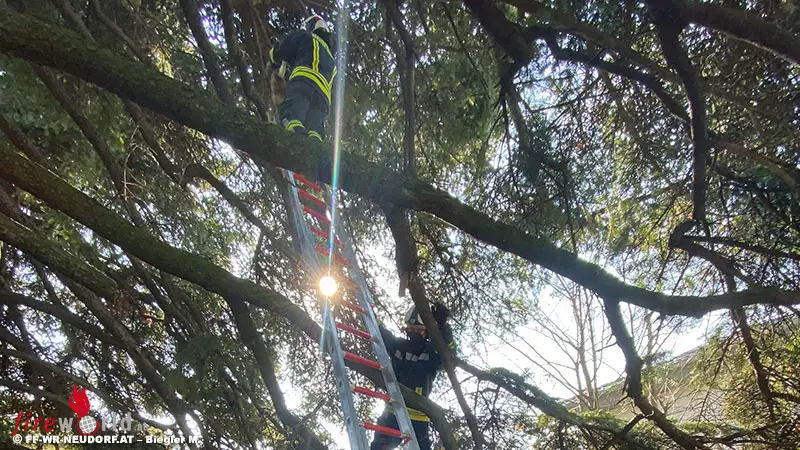 Nö: Feuerwehr Wiener Neudorf rettet Kätzchen „Nala“ aus 8 m Höhe