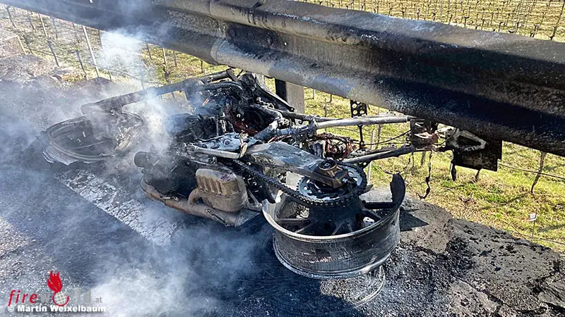 Ersthelfer, darunter ein Notfallmediziner, konnten den verletzten Lenker gerade noch vom Motorrad wegziehen, bevor es zu brennen begann. Weiters breitete sich das Feuer aufgrund der Trockenheit auf die darunterliegende Böschung in den Weingarten aus.