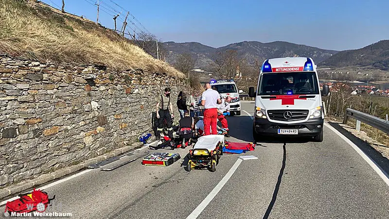 WEISSENKIRCHEN (NÖ): Am Samstag, 26. März 2022, kam es gegen 14 Uhr zu einem schweren Motorradunfall auf der beliebten Ausflugsstrecke von der Wachau in das Waldviertel, die Seiberstraße (L78). In einer Links-rechts Kurvenkombination stürzte ein Motorradfahrer und prallte gegen die Leitschiene.
