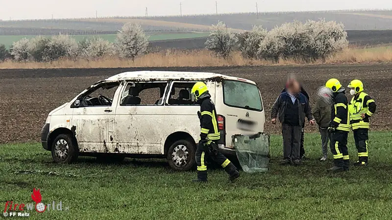 Nö: Fahrzeugbergung nach Mehrfach-Überschlag eines VW Bus mit zwei Verletzten in Retz