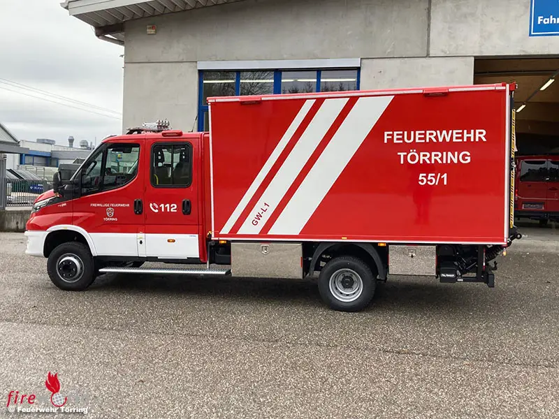Bayern: Gerätewagen-Logistik auf Iveco Daily von Lagermax für die Feuerwehr Törring