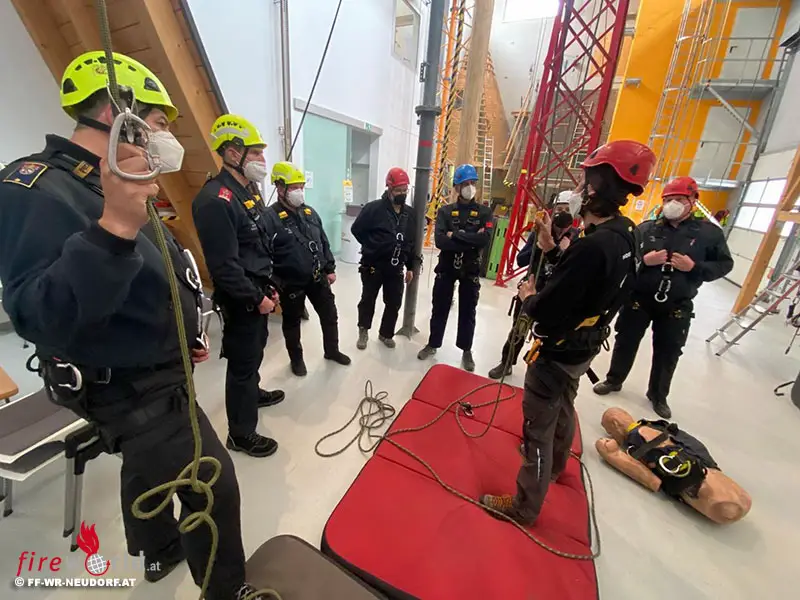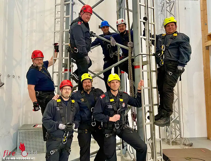 WIENER NEUDORF (NÖ): Am 2. April 2022 absolvierten ein Teil der Führungskräfte der Freiwilligen Feuerwehr Wiener Neudorf, gemeinsam mit zwei Kameraden der Freiwilligen Feuerwehr Brunn am Gebirge sowie einem Kameraden der Freiwilligen Feuerwehr Breitenfurt ein Spezialseminar im Trainingszentrum Baden der Höhenwerkstatt GmbH.