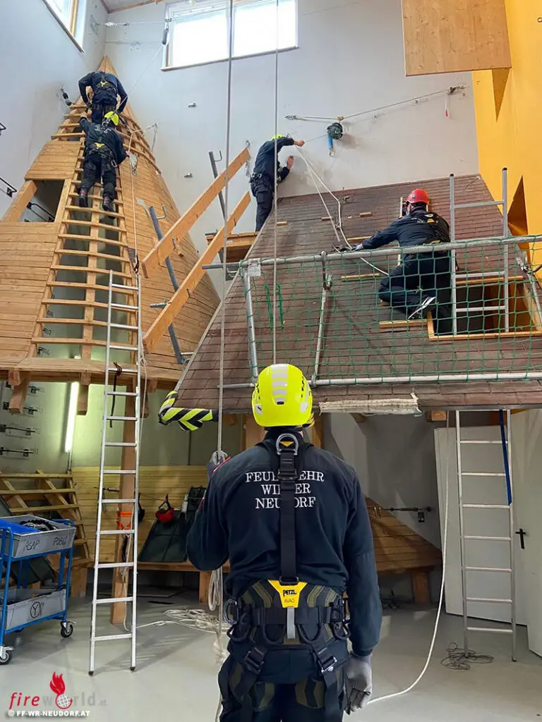 Bei den dabei gelernten Sicherungsvarianten handelt es sich um einfache Lösungen die von jedem schwindelfreien Feuerwehrmann beherrscht werden sollten. Für spezielle Rettungen aus Höhen und Tiefen verfügt die FF Wiener Neudorf zusätzlich seit mehreren Jahren über eine speziell ausgebildete Höhenrettungsgruppe.