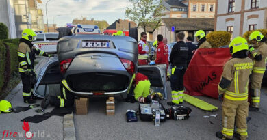 BAD ISCHL (OÖ): „Engleitenstraße, Höhe Stockschützenhalle, Pkw droht zu umzukippen“, mit dieser Einsatzmeldung wurden am Nachmittag des 5. April 2022 die Hauptfeuerwache Bad Ischl und die Feuerwache Ahorn-Kaltenbach alarmiert.
