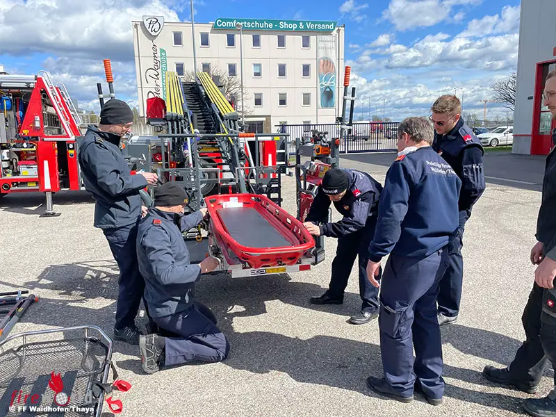 WAIDHOFEN AN DER THAYA (NÖ): Bereits 2019 wurde mit der Planung der neuen Drehleiter begonnen. Am 7. April 2022 konnte eine Abordnung der Feuerwehr Waidhofen/Thaya die neue Drehleiter von der Fa. Rosenbauer übernehmen und eine Ersteinschulung durchlaufen.