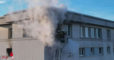 Dabei überzeugte auch das neue Beleuchtungskonzept und die im Aufbau integrierte Blaulichtanlage, welche zusätzlich durch mehrere LED-Bahnräumer ergänzt wurde. Das schlichte Fahrzeugheck wurde, wie alle anderen Wiener Neudorfer Fahrzeuge, mit einer hochreflektierenden Warnmarkierungsfolie beklebt. Als Besonderheit verfügt die Heckklappe über ein kleines Rollo, um bei Bedarf rasch Zugriff auf die Pumpensteuerung zu bekommen, oder die verbaute Verkehrsleiteinrichtung auch im Nahbereich des Fahrzeuges lesen zu können.