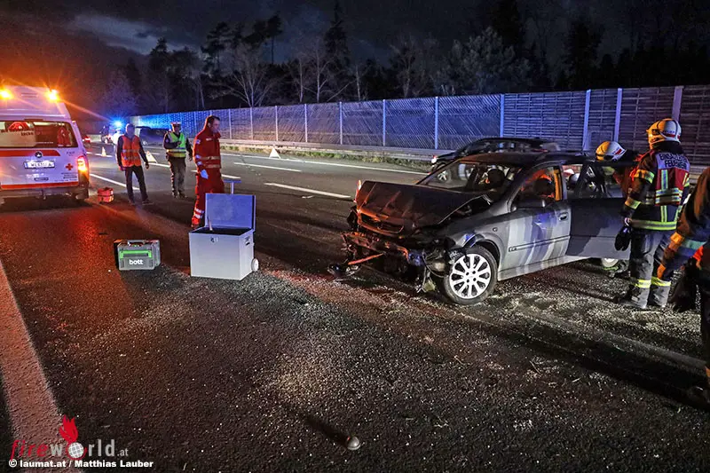 Die Einsatzkräfte wurden am Abend zu einem Verkehrsunfall mit eingeklemmter Person auf die A8 Innkreisautobahn im Bereich des Knoten Wels alarmiert. Ersten Angaben zufolge kam es in Fahrtrichtung Passau im Bereich der Einmündung der A25 Welser Autobahn zu einer Kollision zwischen einem Kleintransporter und einem Pkw.