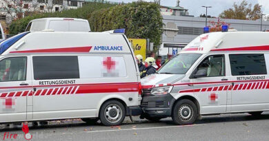 Dabei kam er mit dem rechten Hinterrad über eine dortige zur Fahrbahn ebenerdige Böschungsmauer. Das Rettungsfahrzeug saß in der Folge mit der hinteren Achse auf der dortigen Mauer auf und befanden sich der linke Vorderreifen und der rechte Hinterreifen in der Luft.