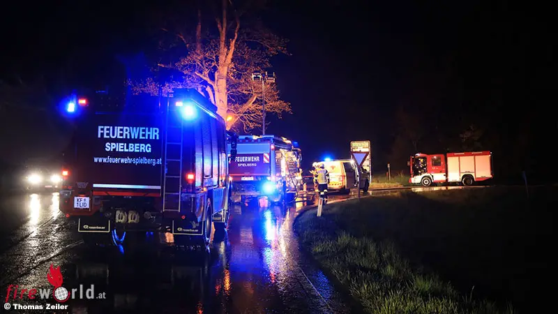 Wenige Minuten nach der Alarmierung trafen bereits Rotes Kreuz, Notarzt, Polizei und die Feuerwehren Spielberg und Sachendorf an der Einsatzstelle ein und begannen mit dem Öffnen der Fahrertüre, schildert Einsatzleiter Oberbrandmeister Andreas Neubauer von der Feuerwehr Spielberg.