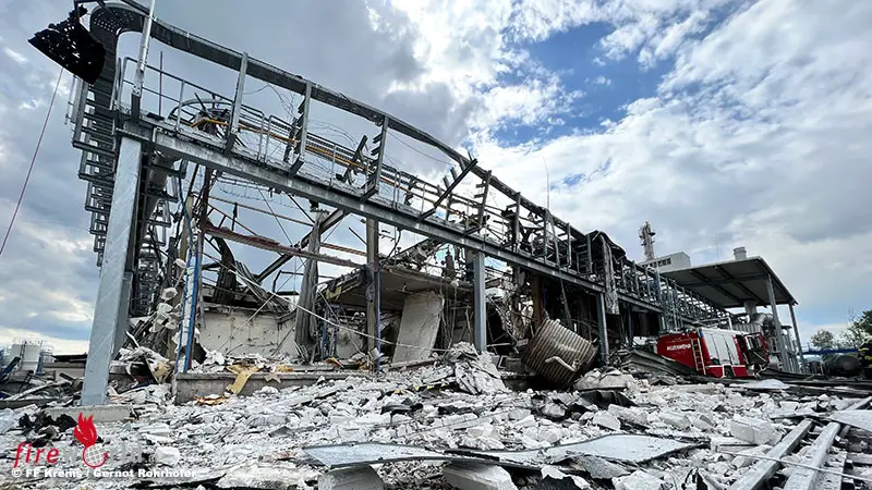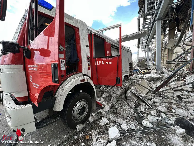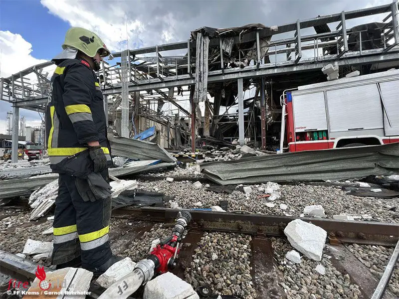 Feuerwehrbericht hier: Nö: Schwere Explosion in Chemiebetrieb in Krems → ein Todesopfer, ein Schwerverletzter und zwei Leichtverletzte
