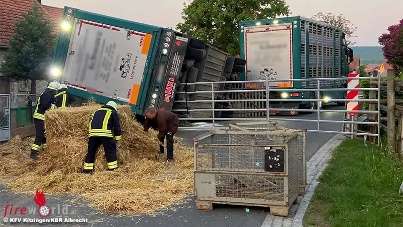 Gegen 04.30 Uhr erreichte die Einsatzzentrale des Polizeipräsidiums Unterfranken die Mitteilung über einen umgekippten Tiertransporter im Ortsgebiet Nenzenheim in Richtung Frankenberg. Als die erste Streifenbesatzung der Polizeiinspektion Kitzingen am Einsatzort eintraf, lag der Tiertransportanhänger mit Kitzinger Zulassung seitlich auf einem Gartentor.