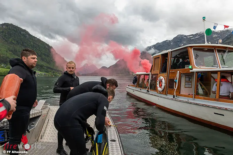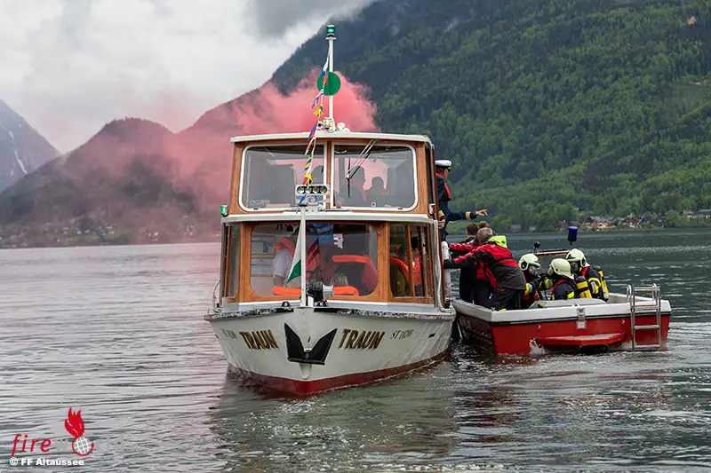 Stmk: Brand mit 30 Betroffenen am Rundfahrtenschiff auf dem Grundlsee als Übungsszenario