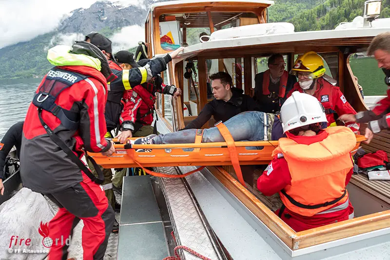 AUSEERLAND (STMK): „Brand mit 30 Betroffenen am Rundfahrtenschiff auf dem Grundlsee“ → so lautete die Übungsannahme am Freitag, dem 13. Mai 2022. Als Ideengeber lud das Rote Kreuz Ausseerland gemeinsam mit der Grundlsee Schifffahrt zu dieser Großübung, der sich zahlreiche Einsatzorganisationen aus der Region anschlossen.