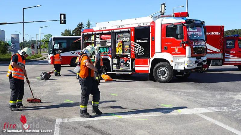 Die Einsatzkräfte zweier Feuerwehren wurden zur Menschenrettung alarmiert. Glücklicherweise war entgegen erster Befürchtungen niemand in den Fahrzeugen eingeklemmt. Die Einsatzkräfte sicherten die Unfallstelle ab, brachten die Unfallfahrzeuge aus dem starkbefahrenen Kreuzungsbereich der B144 Gmundener Straße und führten die Aufräumarbeiten durch. Ausgelaufene Betriebsmittel wurden gebunden.