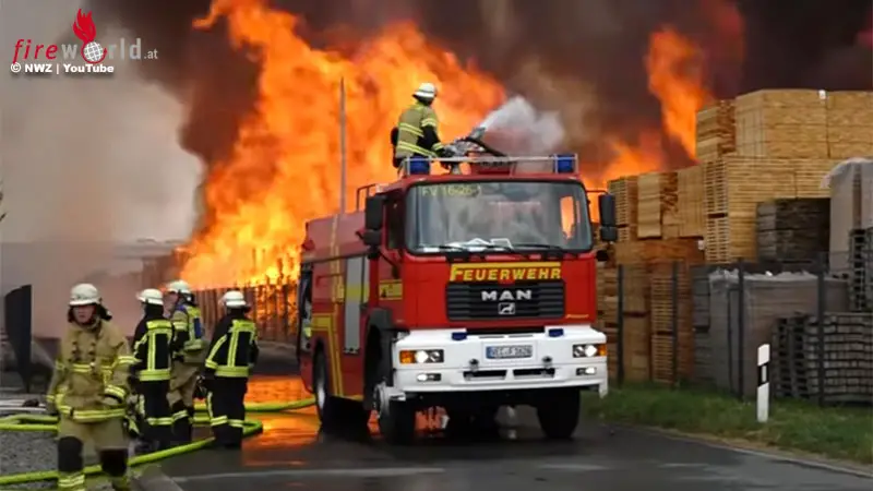 D: Millionenschaden bei Großfeuer bei Palettenhersteller im Industriegebiet Bakum