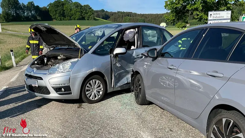 Oö: Bergungsarbeiten nach Pkw-Unfall auf Kreuzung in Neuhofen im Innkreis