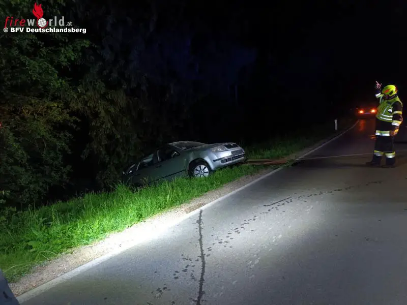 STEYEREGG (STMK): Am Freitag, dem 20. Mai 2022, kurz nach 23 Uhr wurde die FF Steyeregg zu einem Verkehrsunfall alarmiert. Aus ungeklärter Ursache kam eine Autolenkerin auf der B76 Radlpassstraße in Steyeregg von der Fahrbahn ab.