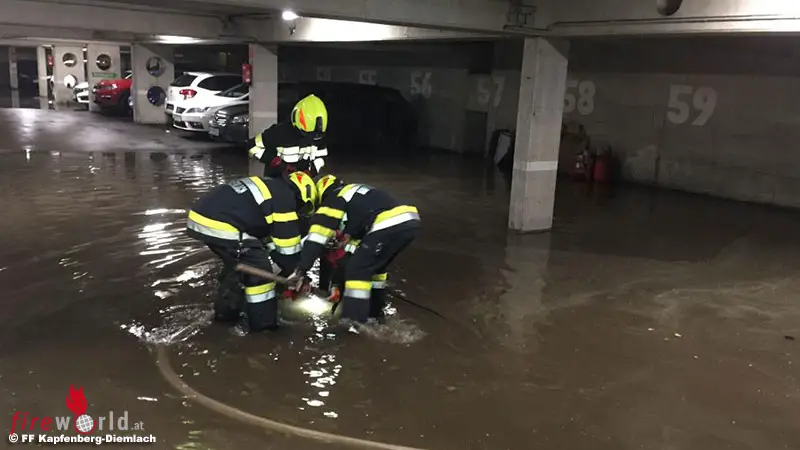 Die Einsatzmeldungen lauteten von „Keller unter Wasser“, „überflutete Straßen“, „Dach abgedeckt“, „Baum über Straße“, „Einkaufsmarkt überflutet“ bis hin zu „Tiefgarage unter Wasser“. Durch die Vielzahl an Schadenslagen standen alle sieben Feuerwehren der Stadt Kapfenberg im Einsatz.