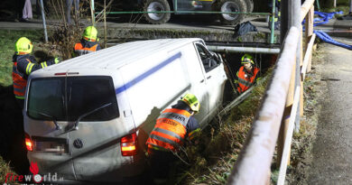Der Kleinwagen kam von der Straße ab, fuhr durchs angrenzende Wiesland und hob aufgrund von abfallendem Terrain ab. Nach rund 20 Metern Flug kam er auf dem Gelände eines landwirtschaftlichen Betriebs zwischen einer Stützmauer und Siloballen zum Stillstand. Der Lenker verletzte sich dabei leicht und wurde durch eine Ambulanz zur Kontrolle in ein Spital gebracht.