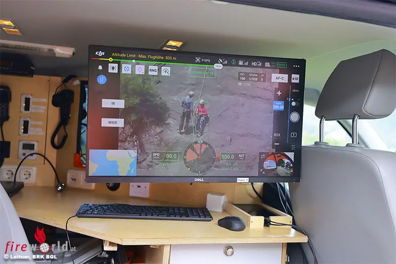 Mit einem Laser können Entfernungen bis zu 1.200 Metern gemessen werden, wobei die Drohne automatisch die GPS-Koordinaten des anvisierten Objekts ausrechnet und übermittelt, so dass Helfer auch im unübersichtlichen Gelände zielgenau zum Einsatzort absteigen oder abseilen können.