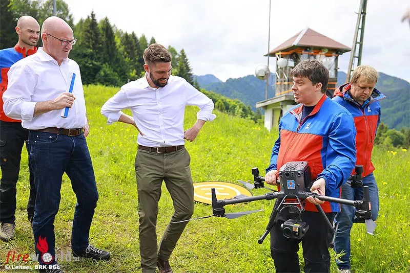 Die Bergwacht-Region Chiemgau hat am Donnerstagnachmittag, 2. Juni 2022, am Unternberg bei Ruhpolding mit den beiden Landräten Bernhard Kern und Siegfried Walch und dem Ehrenvorsitzenden der Bergwacht Bayern, Alois Glück, ihre neue rund 35.000 Euro teure Hochleistungsdrohne für Vermisstensuchen im alpinen und unwegsamen Gelände vorgestellt. Die beiden Landkreise haben das Gerät mit jeweils 5.000 Euro aus ihren Katastrophenschutz-Haushalten mit finanziert und unterstützen damit die von Einheimischen und Gästen wertgeschätzte Arbeit der Bergwacht, die mit der neuen „Matrice M300 RTK“ des Weltmarkt-Führers DJI seit Januar bereits sieben Mal im Einsatz war, darunter bei sechs Vermisstensuchen und einer Ortung eines Verstiegenen.