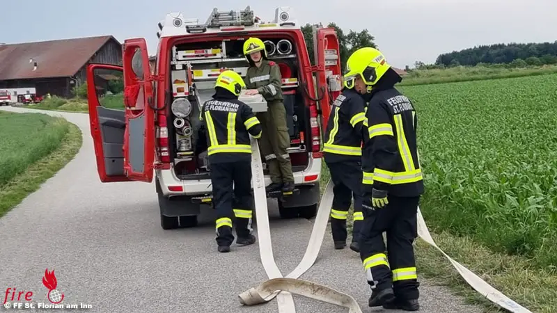 Oö: Feuer am Bauernhof mit 400 m Löschwasserversorgungsleitung als Übungsthema in St. Florian am Inn