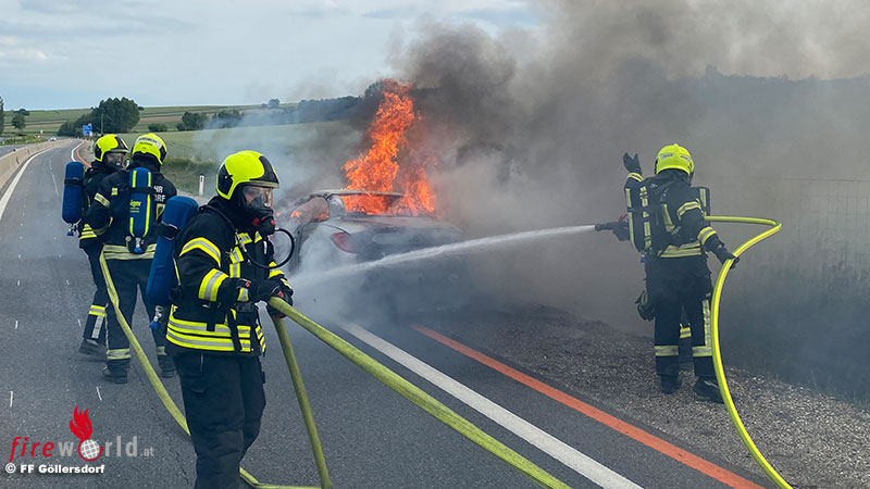 GÖLLERSDORF (NÖ): Gegen 18:06 Uhr des 5. Juni 2022 wurde die Freiw. Feuerwehr Göllersdorf gemeinsam mit den Freiwilligen Feuerwehren Hollabrunn und Viendorf von Florian Niederösterreich zu einem Fahrzeugbrand auf der S3 Höhe Großstelzendorf alarmiert.
