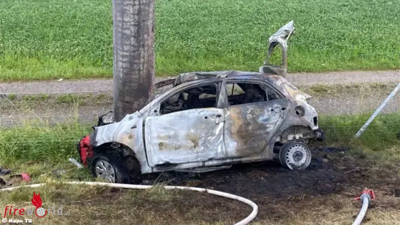 Schweiz: Pkw kracht bei Wängi gegen Strommast → Lenker verbrennt im Auto