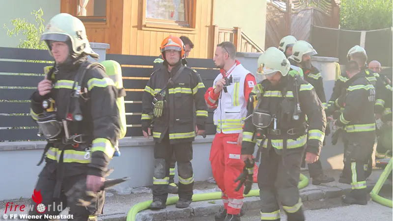 Während der Mann versuchte, die Flammen unter Kontrolle zu bringen, konnten sich die Mutter mit den beiden 9- und 10- jährigen Söhnen und ihren drei Hunden in Sicherheit bringen. Die Frau verständigte den Feuerwehrnotruf, was zur Alarmierung der gesamten Mannschaft der Freiwilligen Feuerwehr Wiener Neustadt führte.