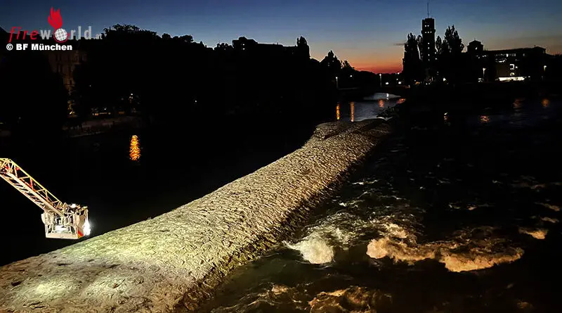 Bayern: Durchnässten Mann in München per Flaschenzug an der Drehleiter vom Isar-Ufer gerettet