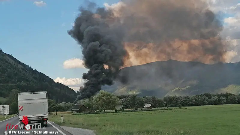 LIEZEN (STMK): Zu einem Brandereignis massiven Ausmaßes wurde am Nachmittag des 13. Juni 2022 die Feuerwehr Liezen durch die Bereichswarnzentrale „Florian Liezen“ alarmiert. Beim Abfallwirtschaftsverband in der Gesäusestraße war ein Brand in einer Lagerhalle ausgebrochen, in der Sperrmüll zur Sortierung gelagert war. Die Erstalarmierung erging um 18:09 Uhr.