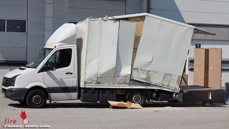 WELS (OÖ): Schwer beschädigt wurde Freitagvormittag, 17. Juni 2022, ein Kleintransporter, als dieser durch eine zu niedrige Eisenbahnunterführung in Wels fahren wollte.