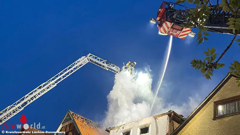 /as erste Gebäude war nicht bewohnt, die angrenzenden Gebäude wurden durch Einsatzkräfte der Feuerwehr evakuiert. Die Feuerwehr setzte drei Drehleitern, einen Wasserwerfer und mehrere Strahlrohre ein, um das Feuer unter Kontrolle zu bekommen. Während der Löscharbeiten im Innenangriff verletzte sich eine Feuerwehrfrau leicht und kam vorsorglich zur Kontrolle ins Dannenberger Krankenhaus.
