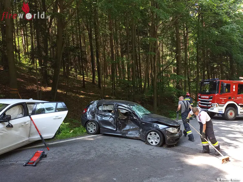 Der im Wald befindlich Pkw wurde dabei mittels Seilwinde geborgen. Beide Fahrzeuge wurden durch ein Privatunternehmen von der Unfallstelle abgeschleppt. Im Anschluss wurde die Fahrbahn gereinigt und der Straßenerhalter verständigt.