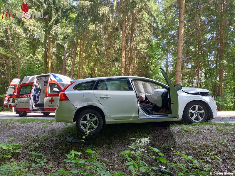 Bei der Ankunft an der Unfallstelle auf der Hochneukirchenstraße stellte sich heraus das bei diesem Unfall zwei Fahrzeuge beteiligt waren, wobei einer im angrenzenden Wald zu stehen kam. Die beiden leicht verletzten Lenker wurden bereits vom Roten Kreuz versorgt und danach in Krankenhäuser gebracht. Die Mitglieder der FF Krumbach sicherten die Unfallstelle ab und begannen nach der Freigabe durch die Polizei die Bergemaßnahmen durchzuführen.