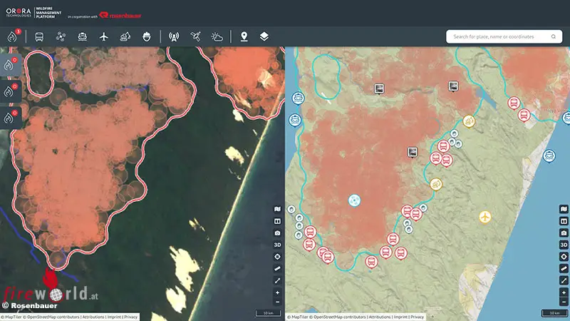 Außerdem stellt Rosenbauer auf der Interschutz ein Projekt zur Waldbrandfrüherkennung vor. Dabei wird das Satellitensystem von OroraTech, einem führenden digitalen Aufklärungsdienst für globale Waldbrände, mit RDS Connected verknüpft und erhalten die Einsatzorganisationen Zugriff auf aktuelle und historische Satellitendaten. Gemeinsames Ziel ist, diese künftig nicht nur zur unmittelbaren Branddetektion sondern für den Aufbau eines kompletten, auf Prävention ausgerichteten Waldbrandüberwachungssystem zu nutzen.