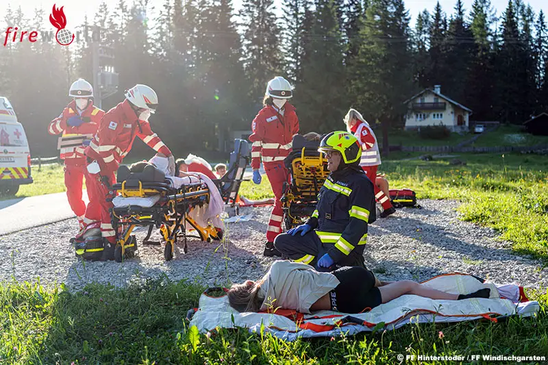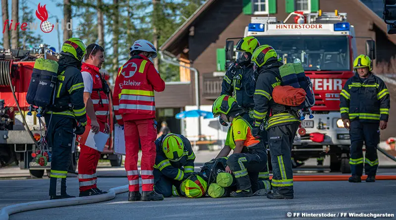 HINTERSTODER (OÖ): Am 23. Juni 2022 führten die Feuerwehren Hinterstoder, Vorderstoder und Windischgarsten eine Feuerwehrübung auf der Höss im „Landesjugendhaus Edtbauernalm“ durch.