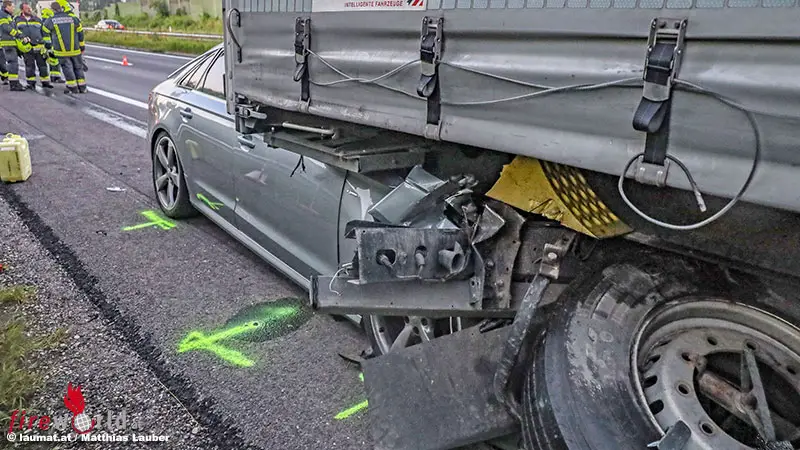 Ein Pkw ist in den frühen Samstagmorgenstunden auf der A25 Welser Autobahn in Fahrtrichtung Wels, unmittelbar vor der Autobahnabfahrt Marchtrenk-West beziehungsweise Wels-Ost in das Heck eines LKW gekracht. Der Pkw wurde dabei schwer unter dem Sattelauflieger eingeklemmt. Der Lenker war zum Glück aber nicht eingeklemmt.