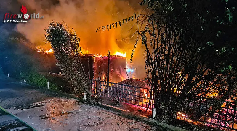 mehr lesen ...MÜNCHEN (BAYERN): Bei einem Brand in einer Kleingartenanlage sind am frühen Donnerstagmorgen, 7. Juli 2022,