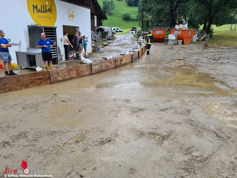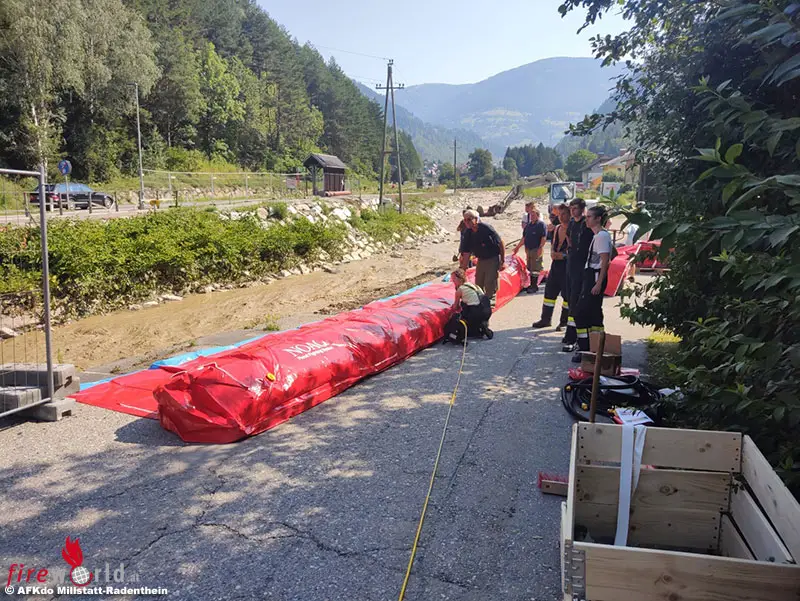 Nachdem bekannt wurde, dass sich die Wassermassen in Form einer Flutwelle aus den beiden Tälern Richtung Radenthein bewegten, wurden alle Feuerwehren der Stadtgemeinde Radenthein sowie auch die Wasserrettung Ferndorf und Döbriach alarmiert, um die Straßen und Brücken entlang der Bachläufe bis in den Millstätter See gemeinsam mit den Kräften der Polizei zu sperren und zu beobachten.