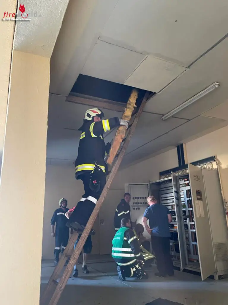 Der Atemschutztrupp stellte einen Glimmbrand im Bereich einer elektrischen Anlage fest, welcher bereits auf die Dachkonstruktion übergegriffen hat. Daraufhin wurden Löschmaßnahmen gesetzt und Teile der Deckenkonstruktion geöffnet. Dabei wurde ein weiterer Atemschutztrupp der Feuerwehr Grafenwörth zur Unterstützung eingesetzt. Die Kontrolle der Löschmaßnahmen erfolgte mit der Wärmebildkamera der Feuerwehr Jettsdorf.