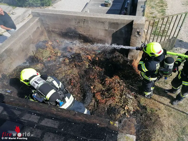 Nö: Brennende Grünschnittdeponie beim Friedhof in Markt Piesting