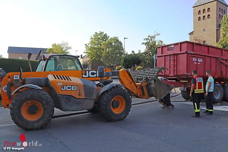 Aus bislang ungeklärter Ursache stürzte im Kurvenbereich der Oberstraße in Gangelt/Schierwaldenrath direkt am Kindergarten ein mit Dung beladener Anhänger eines landwirtschaftlichen Fahrzeuges um. Glücklicherweise kamen bei dem Unfall keine Personen zu Schaden. Allerdings wurde die Fahrbahn der Oberstraße deutlich beschädigt.
