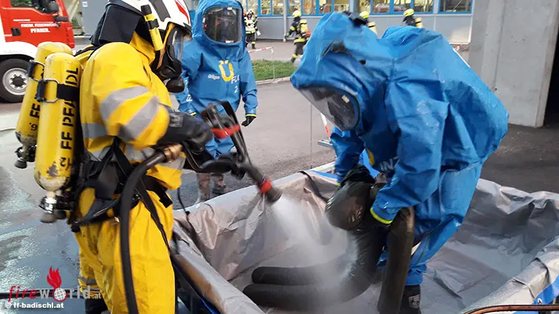 Oö: Gefahrgutübung in Beizanlage eines Betriebes in Bad Ischl