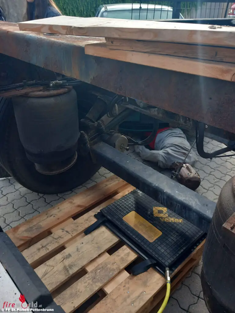 Die Aufgabe des Feuerwehrnachwuchses bestand darin, den Patienten so schonend wie möglich aus seiner misslichen Lage zu befreien. Unter Einsatz pneumatischer Hebekissen sowie dem hydraulischen Spreizer gelang auch diese Herausforderung äußerst schnell und der Verletzte konnte dem fiktiv anwesenden Rettungsdienst übergeben werden.