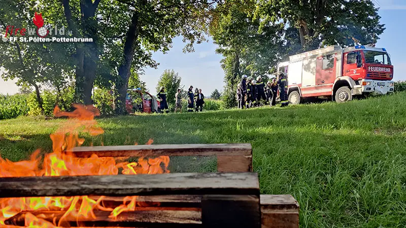 Zurück im Feuerwehrhaus wartete bereits die wohlverdiente Stärkung. Gebührend wurden Würstel am Lagerfeuer gegrillt und über den vergangenen „Einsatz“ gefachsimpelt. Die Nacht verlief ruhig, ehe Samstagmorgen eine Menschenrettung am Gelände abzuwickeln war. Bei einem Verkehrsunfall kam eine Person unter einem Anhänger zu liegen.