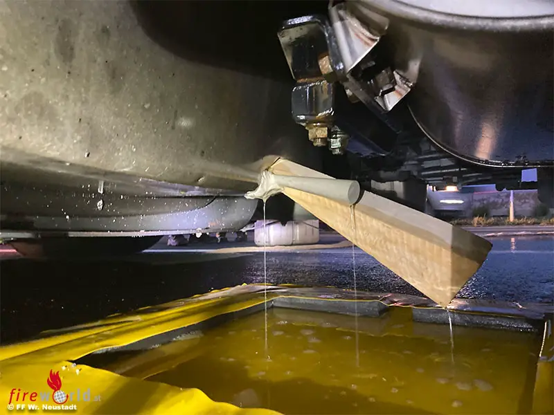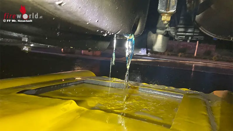 „Der Dieseltank fasste rund 400 Liter. Wir konnten 350 Liter auffangen und die Umwelt davor schützen. Auch der nicht unbeträchtliche wirtschaftliche Schaden, der durch den fehlenden Kraftstoff einzutreten drohte, konnte durch den Einsatz abgewendet werden“, so Branddirektor Christian Pfeiffer, Kommandant der Freiwilligen Feuerwehr Wiener Neustadt.
