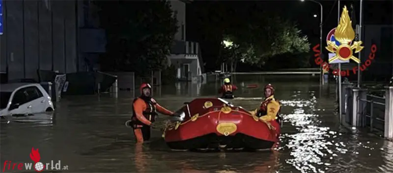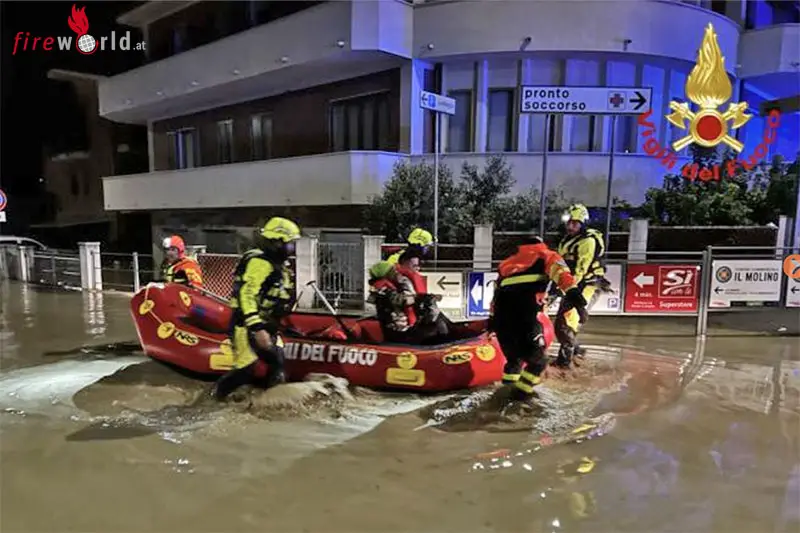 ANCONA (ITALIEN): Zahlreiche Feuerwehrleute stehen nach schweren Regenfällen in der Provinz Ancona, mit Verstärkung von Einsatzabteilungen aus Venetien, Emilia Romagna und Abruzzen, im Einsatz. Das berichtet die italienische Feuerwehr per 16. September 2022.