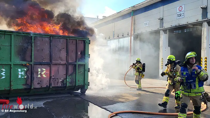 Bayern: 40 m³ Schrottcontainer brennt auf Betriebsgelände in Regensburg