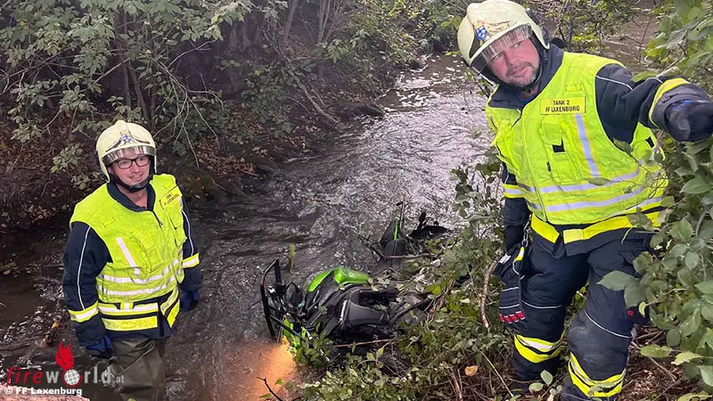 Nö: Fahrschülerin in Laxenburg verunfallt → Motorradbergung aus Bachbett